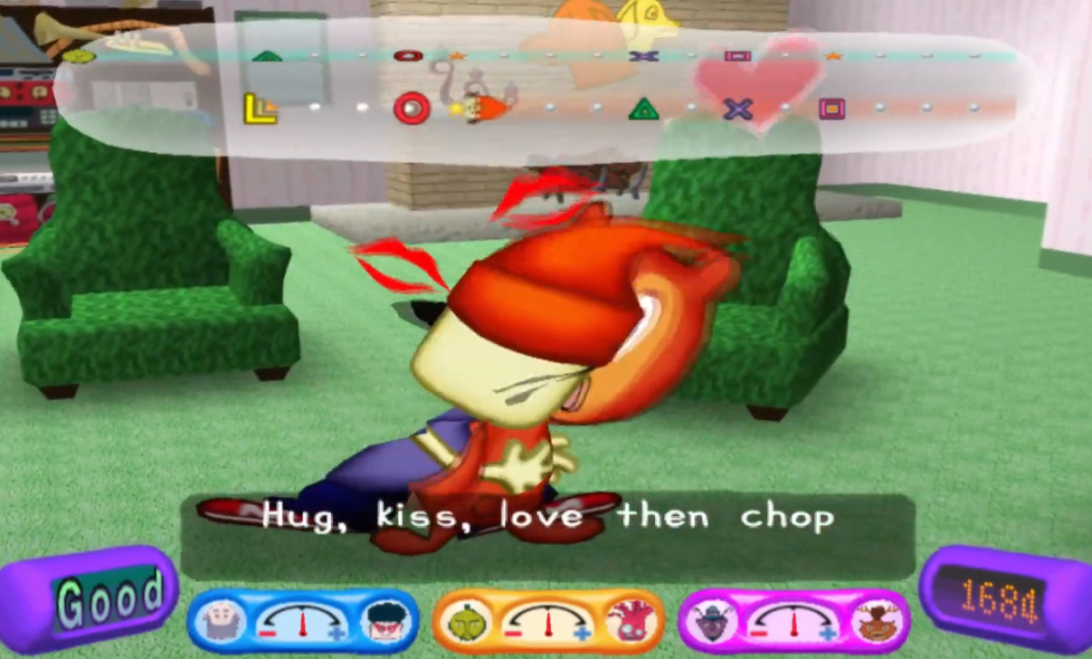 Take everything flawed about PaRappa 1 and fix it. The UI is so much more coherent, there's no lag and laetency, gameplay is just improved tenfold. The presentation of the game also looks so cool; I think it's the use-age of shading but it has this really vibrant look to it that I've never really seen another game pull off. The plot is equally as batshit, but has a bit more of a through-line with the characters and plot.